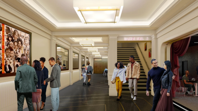 The renovation will include a new café, bar, and retail space, expanded public areas, upgrades to the theater’s iconic façade and marquee, state-of-the-art production systems, HVAC improvements, and modernized restrooms and elevators.