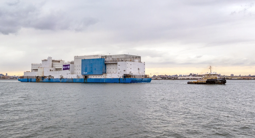 The five-story Vernon C. Bain Correctional Center (VCBC) jail barge has been removed from the Hunts Point waterfront, clearing the way for redevelopment of the site.