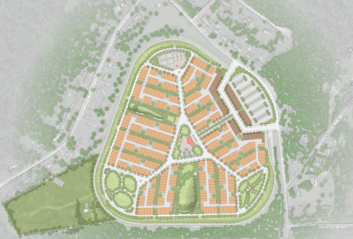 The first phase of construction, which is expected in January 2026, would include 375 units of housing, including a minimum of 20 percent designated as permanently affordable to households earning less than 80 percent of the Area Median Income. Housing options would include two story duplexes and triplexes and at least 25 percent of the units will include three bedrooms.