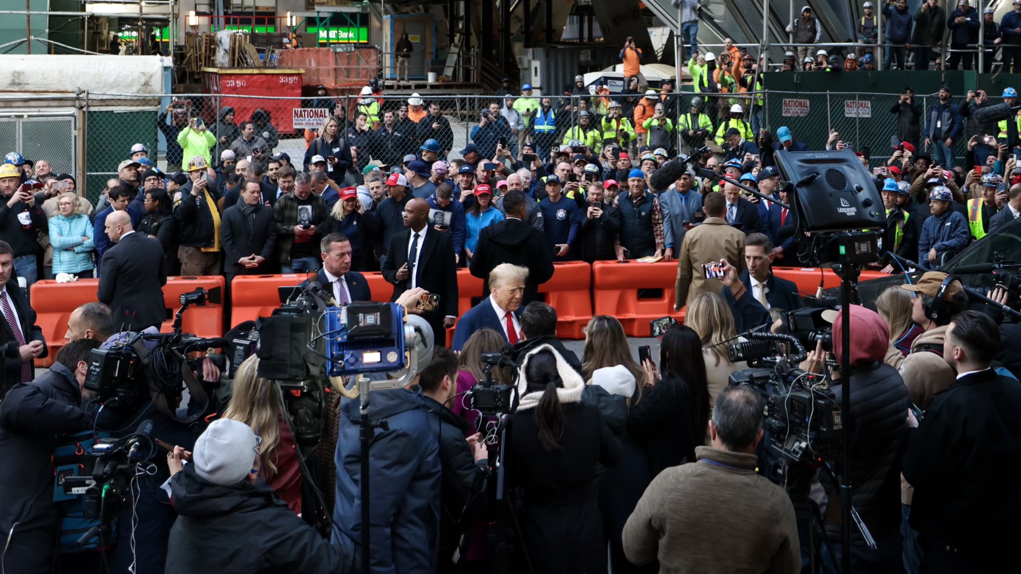Former President Donald Trump visited a construction site in New York City to talk to union workers Thursday morning, before heading back to criminal court in Lower Manhattan for another day of testimony from former National Enquirer publisher David Pecker.