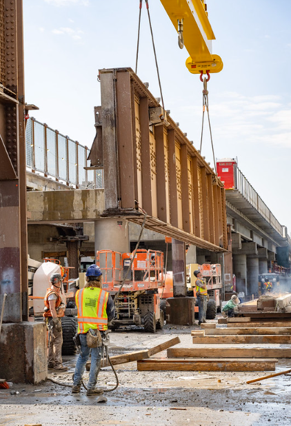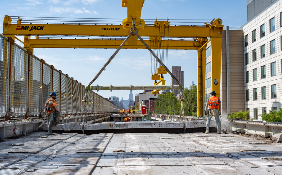 The work, led by Halmar International, replaced the full substructure and superstructure from East 115th Street to East 123rd Street, including track, power, communications, and signal systems. Using an innovative moveable gantry system proposed by Halmar during the project’s Design-Build procurement, crews were able to install prefabricated sections of the concrete and steel bridge deck over 19 weekends since June 2024 while maintaining service on the remaining tracks.