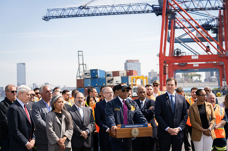 Adams also announced an $80 million investment in the Brooklyn Marine Terminal to stabilize and repair Piers 7, 8, and 10, and to fund planning for the 122-acre waterfront’s future, including an up to $15 million investment to fund a new modern, electrified container crane for operations at the terminal.