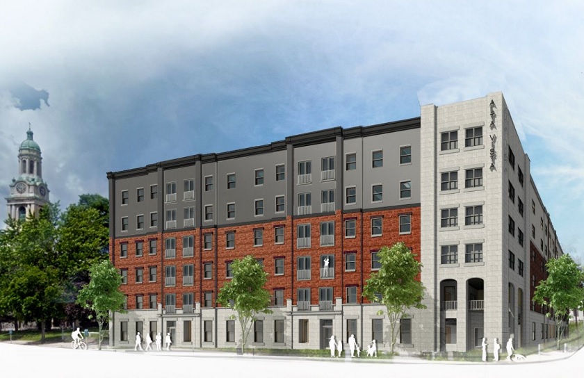 Alta Vista at St. Joseph’s Park will be constructed on four vacant lots along Franklin, Pleasant and Andrews Streets and within the city’s DRI target area. The six-story building will include 76 apartments and 2,600 square feet of commercial space to be used by The Landmark Society of Western New York for free public event programming and special private occasions tied to the historic St. Joseph’s Park.